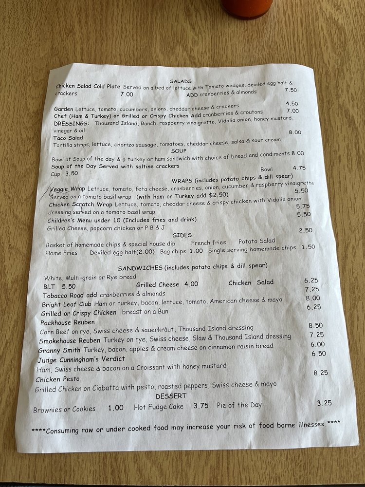 The Packhouse Menu